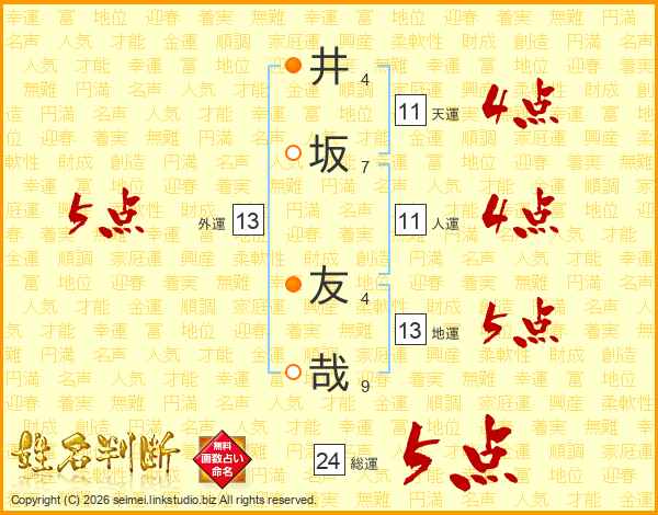 井坂友哉さんの天運は11画の4点!