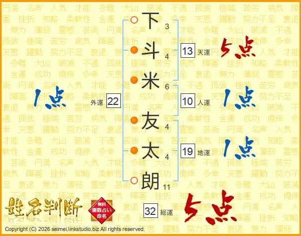 下斗米友太朗さんの天運は13画の5点!