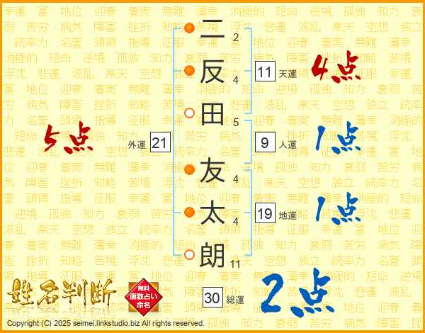 二反田友太朗さんの天運は11画の4点!