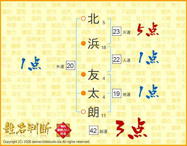 北浜友太朗さんの天運は23画の5点!