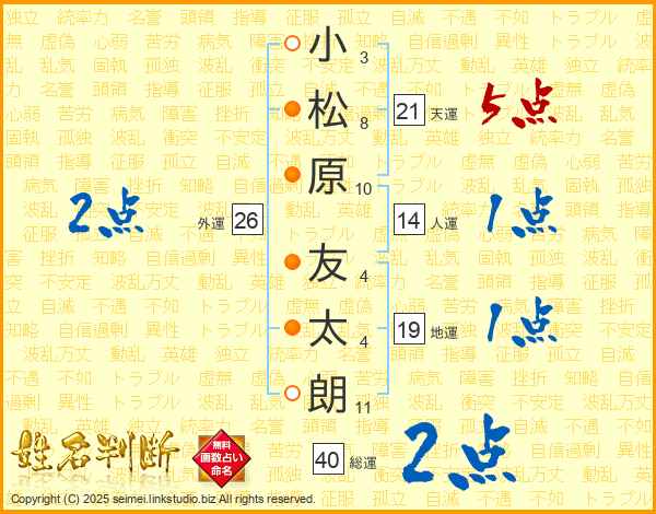 小松原友太朗さんの天運は21画の5点!
