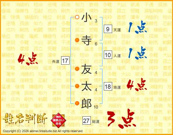 小寺友太郎さんの総運は27画の3点!