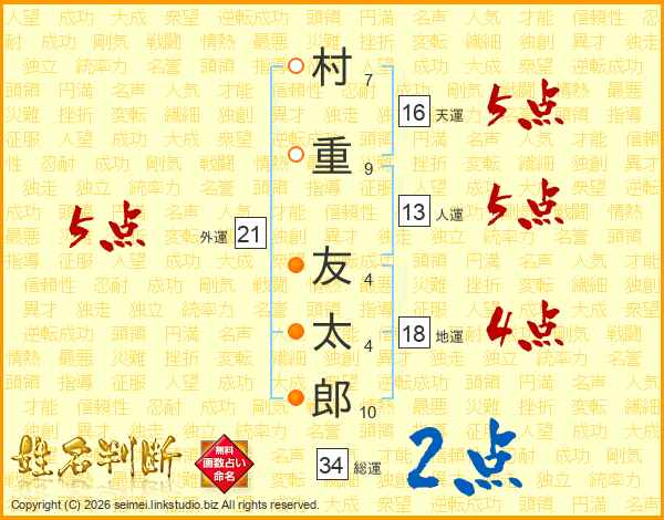 村重友太郎さんの人運は13画の5点!