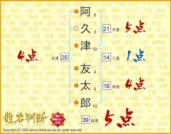 阿久津友太郎さんの総運は39画の5点!