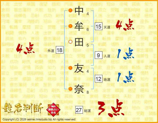中牟田友奈さんの総運は27画の3点!