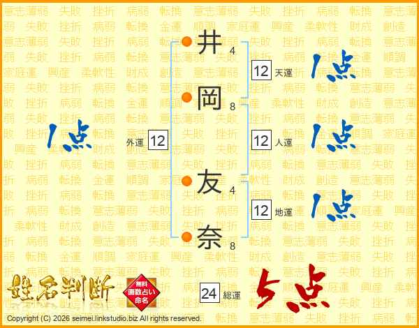 井岡友奈さんの総運は24画の5点!