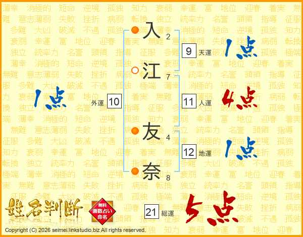 入江友奈さんの総運は21画の5点!
