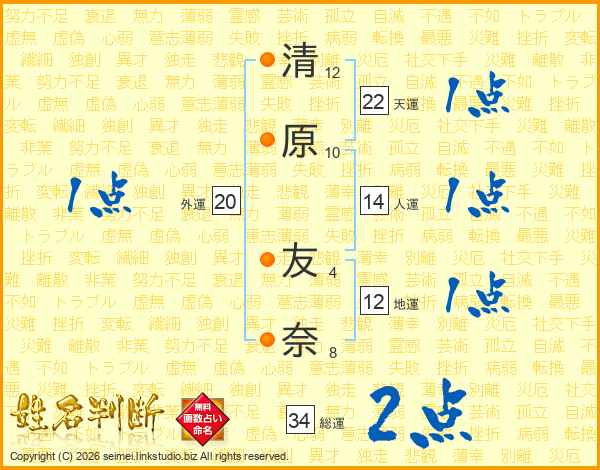 清原友奈さんの総運は34画の2点!