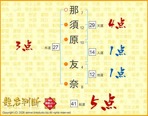 那須原友奈さんの総運は41画の5点!