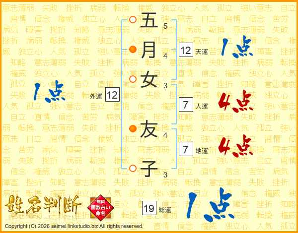 五月女友子さんの人運は7画の4点!