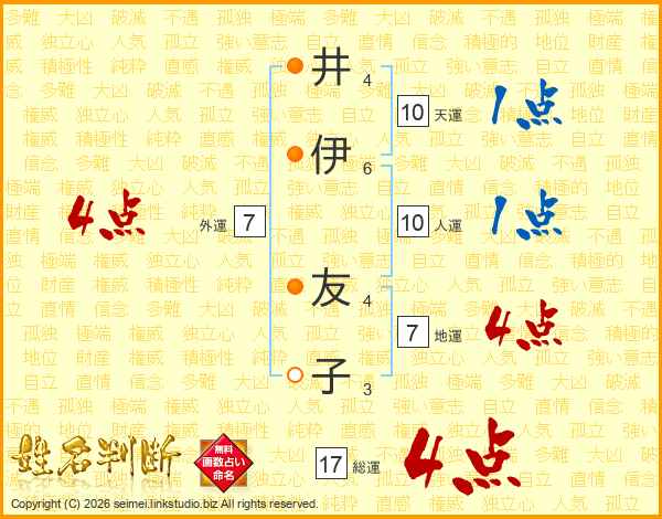 井(4画)伊(6画) 友(4画)子(3画)