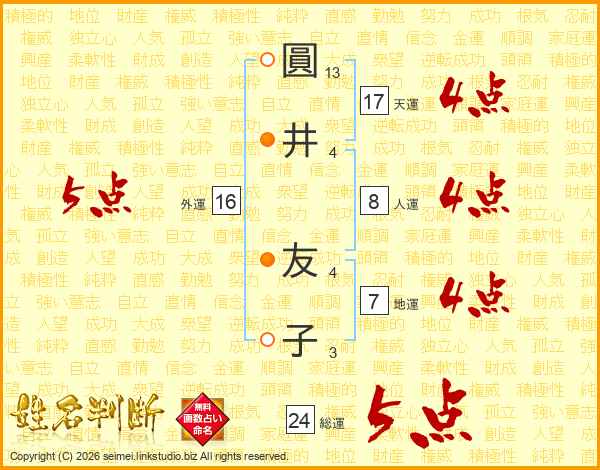 圓井友子さんの外運は16画の5点!