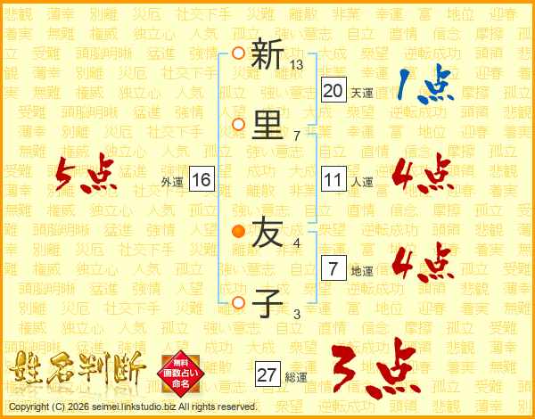 新里友子さんの外運は16画の5点!