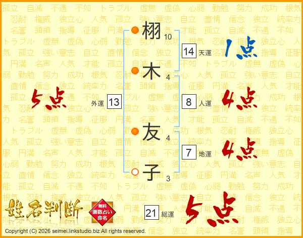 栩(10画)木(4画)  友(4画)子(3画)