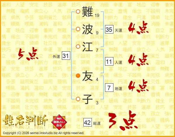 難波江友子さんの外運は31画の5点!