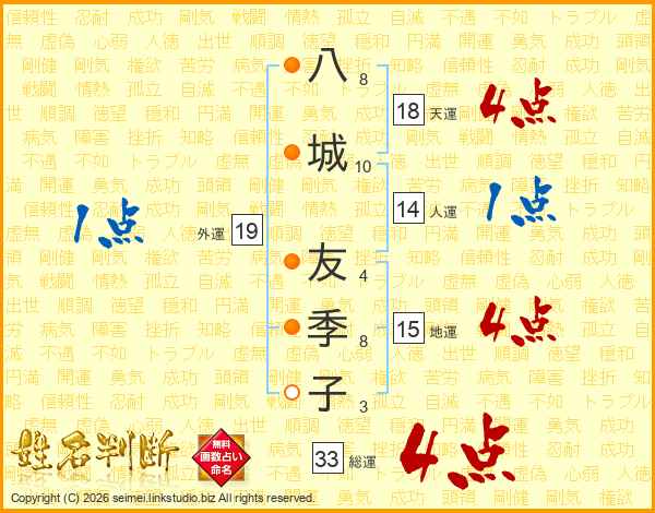 八城友季子さんの総運は33画の4点!