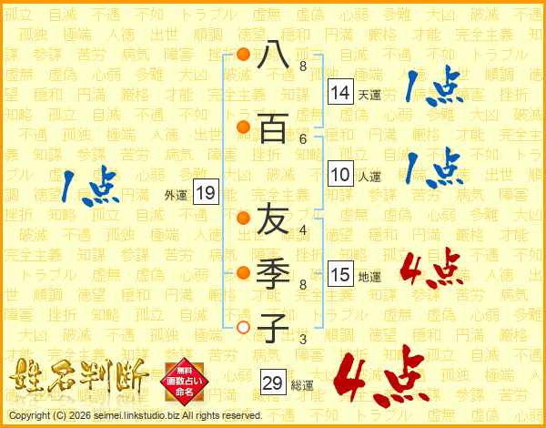 八百友季子さんの総運は29画の4点!