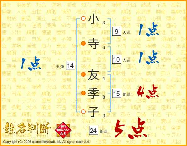 小寺友季子さんの総運は24画の5点!