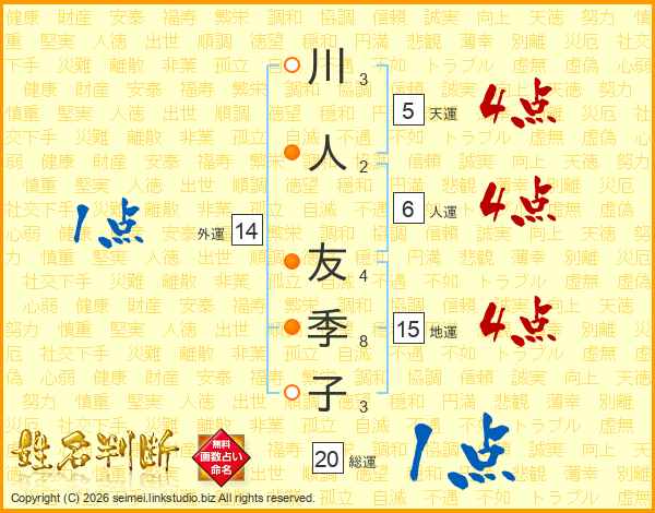 川人友季子さんの総運は20画の1点!