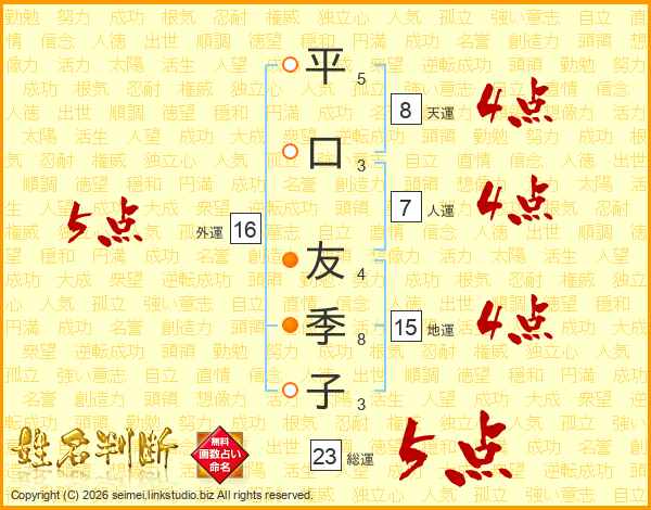 平(5画)口(3画) 友(4画)季(8画)子(3画)