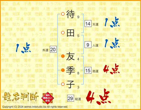 待田友季子さんの総運は29画の4点!