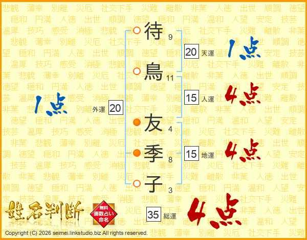 待鳥友季子さんの総運は35画の4点!