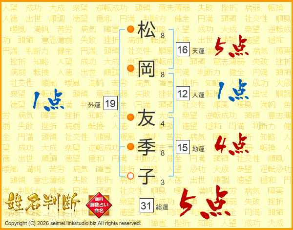 松岡友季子さんの総運は31画の5点!