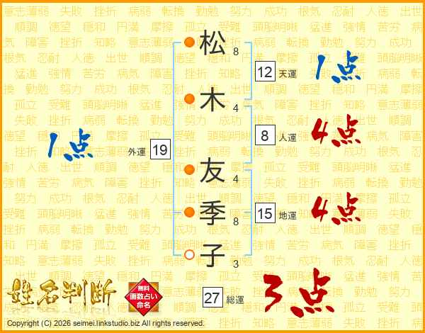 松(8画)木(4画) 友(4画)季(8画)子(3画)