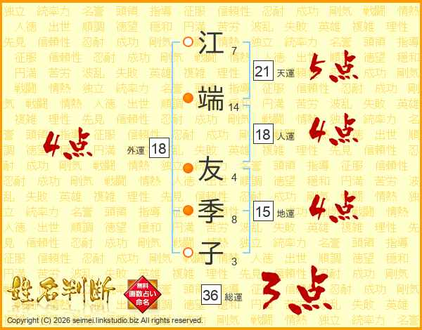 江端友季子さんの外運は18画の4点!
