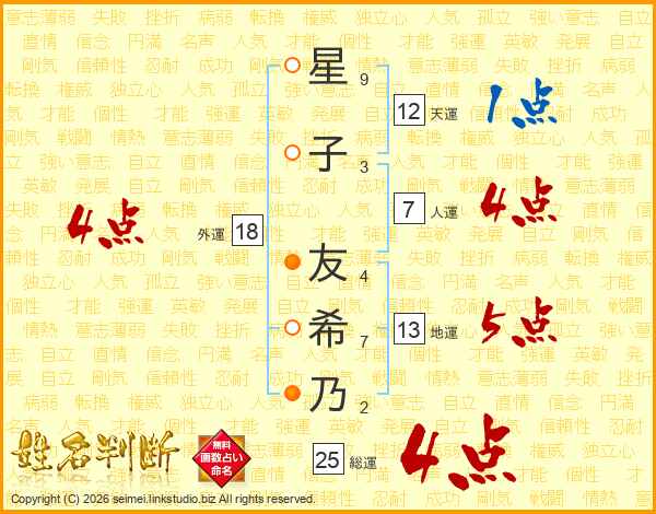 星(9画)子(3画) 友(4画)希(7画)乃(2画)