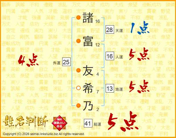 諸富友希乃さんの総運は41画の5点!