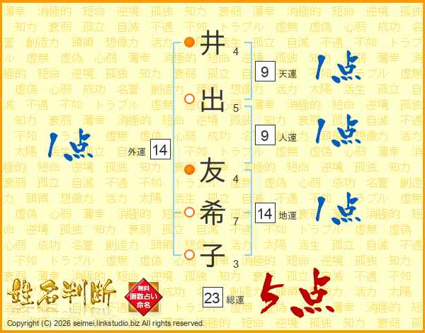 井出友希子さんの総運は23画の5点!