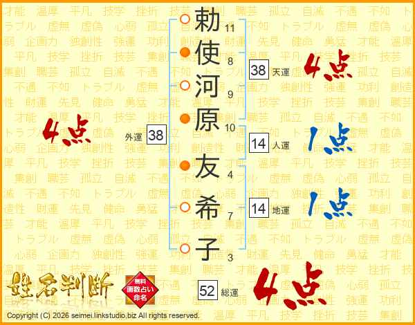 勅使河原友希子さんの外運は38画の4点!