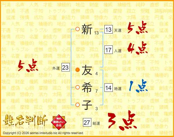 新友希子さんの外運は23画の5点!