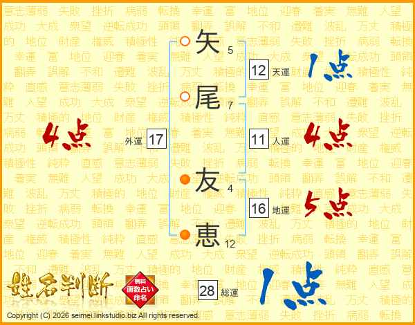 矢尾友恵さんの外運は17画の4点!
