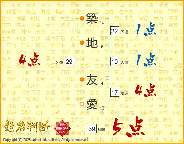 築地友愛さんの地運は17画の4点!