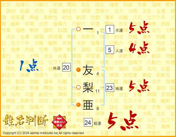 一友梨亜さんの総運は24画の5点!