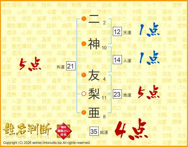 二神友梨亜さんの総運は35画の4点!
