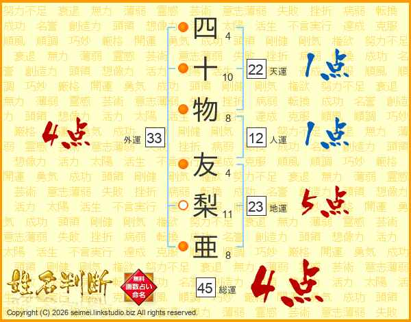 四十物友梨亜さんの総運は45画の4点!