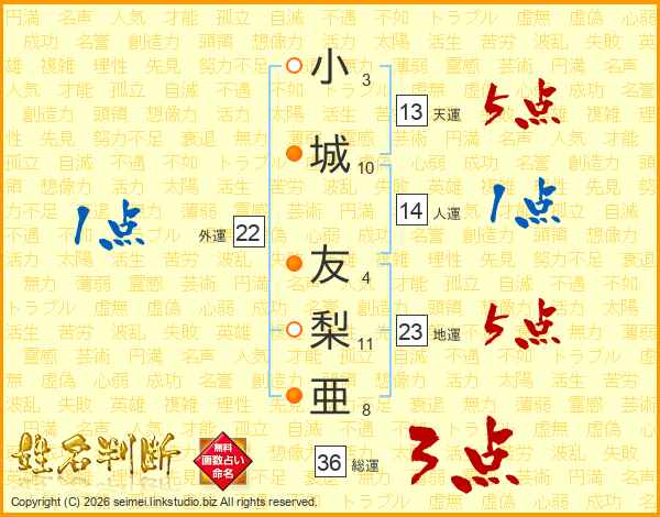 小城友梨亜さんの天運は13画の5点!