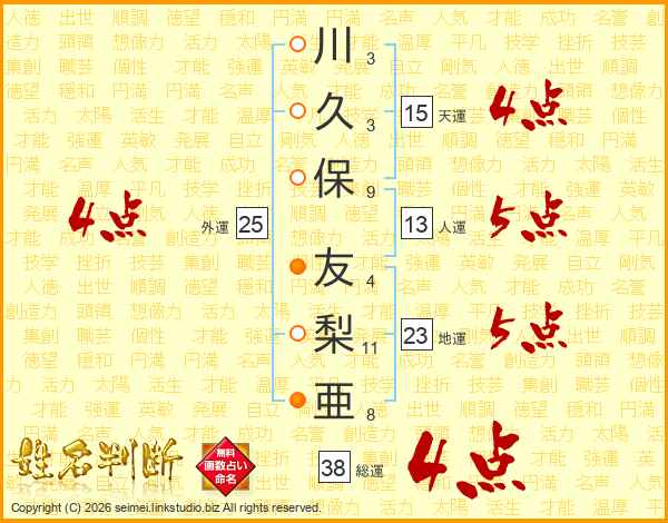 川久保友梨亜さんの総運は38画の4点!