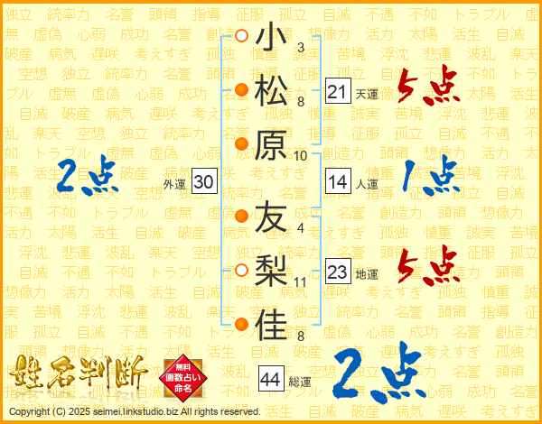 小松原友梨佳さんの総運は44画の2点!