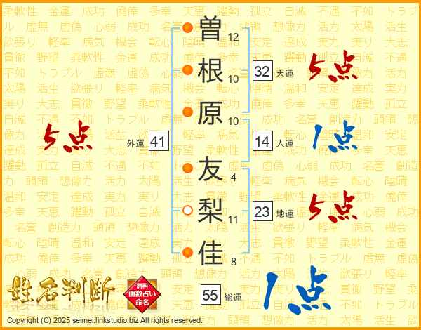 曽根原友梨佳さんの天運は32画の5点!