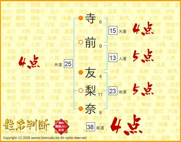 寺前友梨奈さんの総運は38画の4点!
