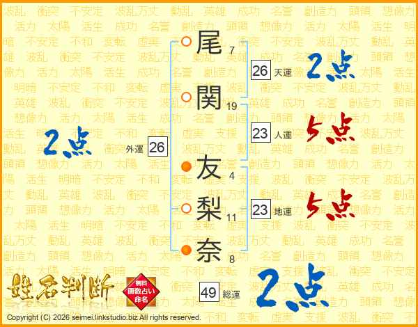 尾関友梨奈さんの天運は26画の2点!