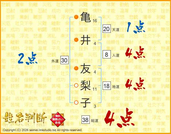 亀井友梨子さんの総運は38画の4点!