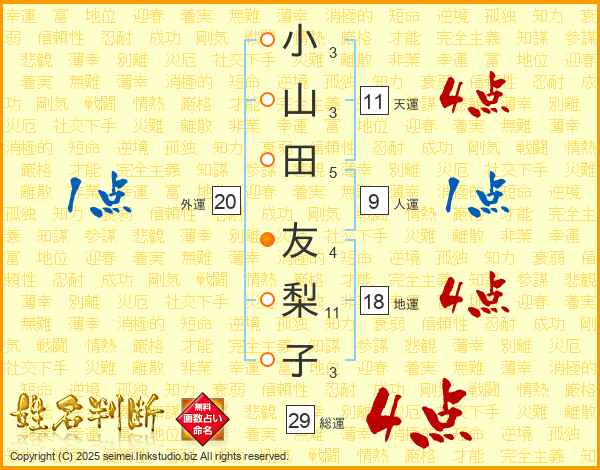 小山田友梨子さんの総運は29画の4点!