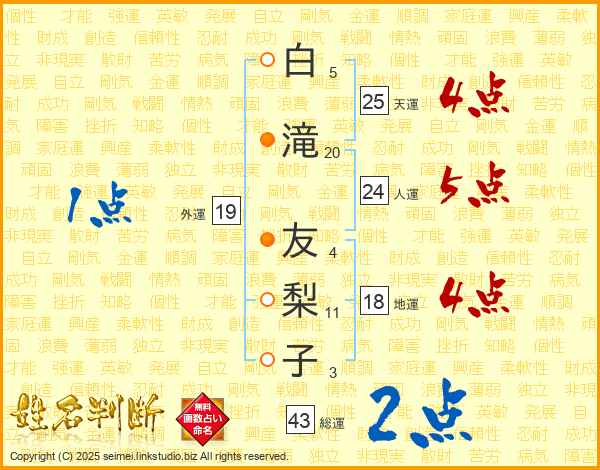 白滝友梨子さんの天運は25画の4点!