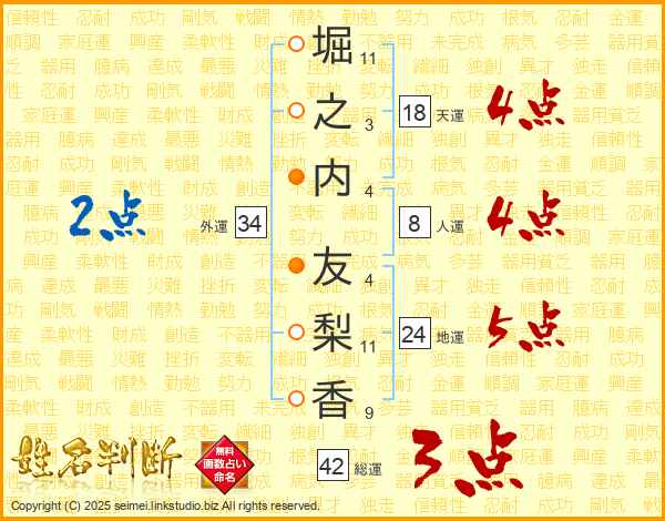堀之内友梨香さんの外運は34画の2点!