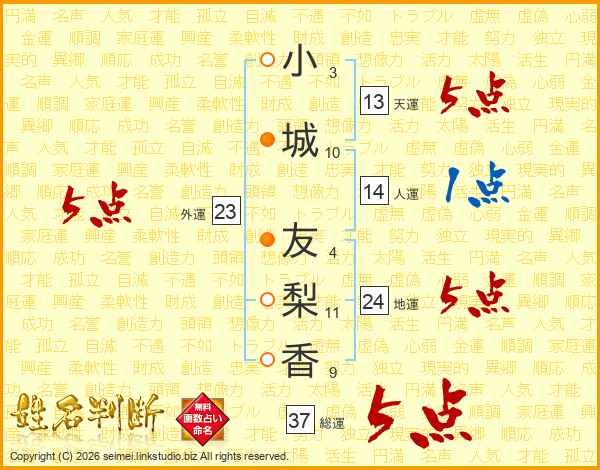 小城友梨香さんの総運は37画の5点!